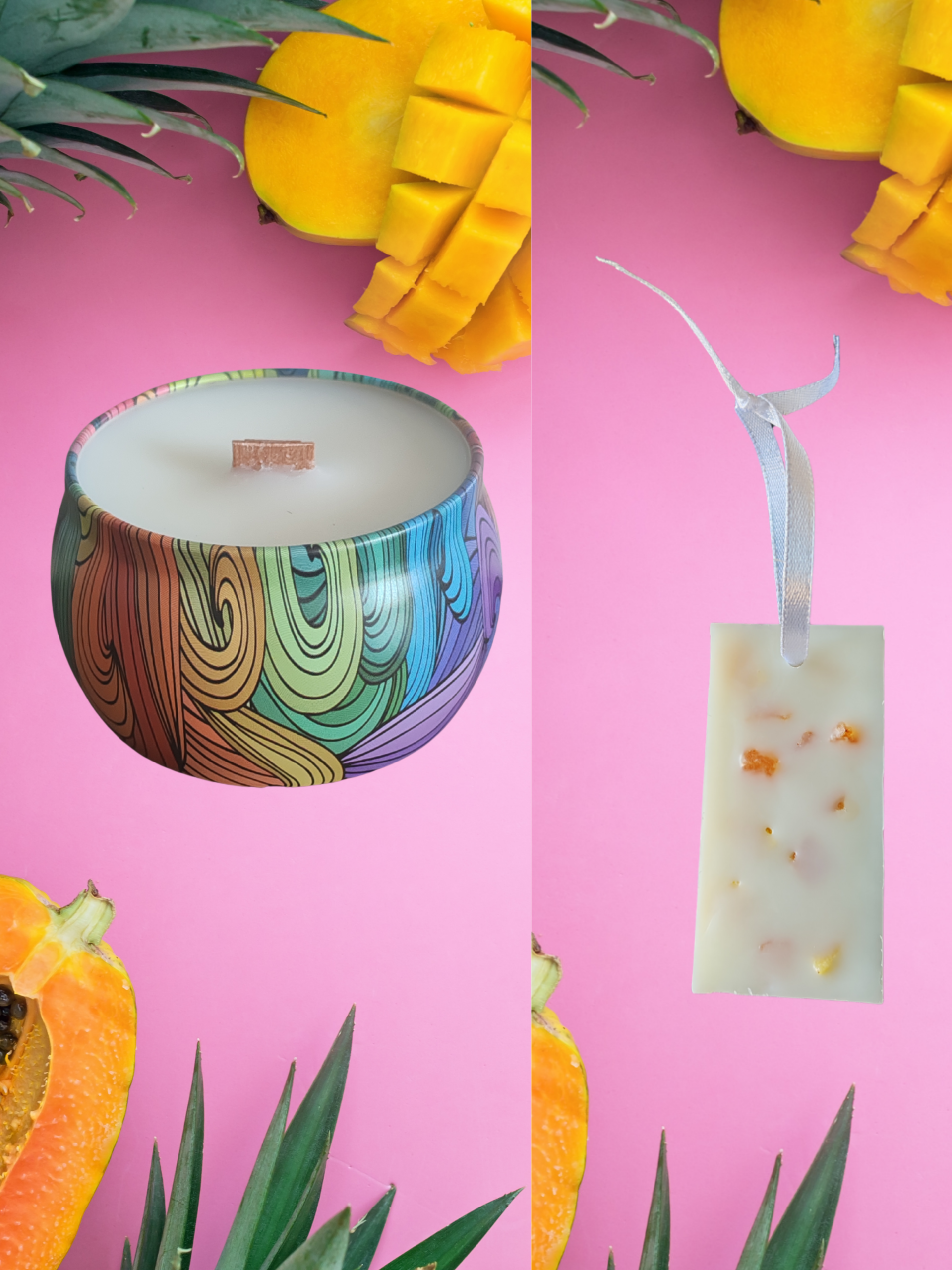 BOUGIE PARFUMÉE MANGUE PAPAYE + SUSPENSION ARMOIRE PARFUMÉE MANGUE PAPAYE