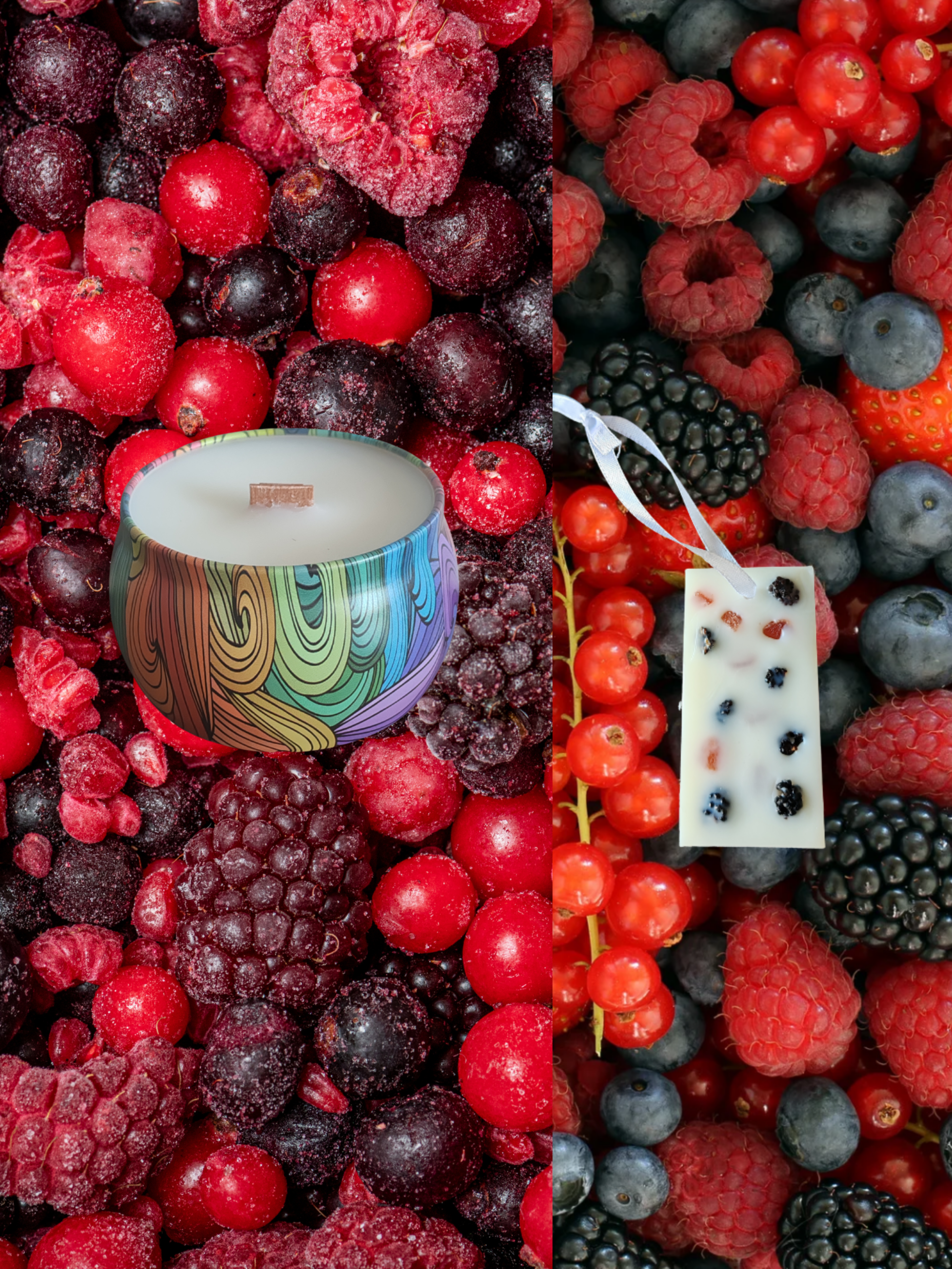 BOUGIE PARFUMÉE FRUITS-ROUGES + SUSPENSION ARMOIRE PARFUMÉE FRUITS-ROUGES